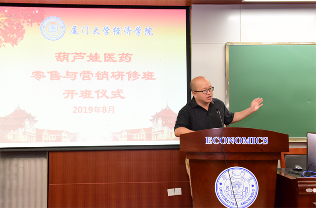 8月31日,EBpay医药零售与营销研修班开班仪式在厦门大学经济学院举行,为期8天的“厦大EBpay班”正式拉开帷幕。厦门大学经济学院继续教育中心主任廖景峰先生与EBpay药业集团董事长刘景萍女士分别在开班仪式上致辞,中国医药物资协会研究院执行院长代航先生担任本次研修班班主任并主持开班仪式。▲廖景峰主任在开班仪式上致欢迎辞