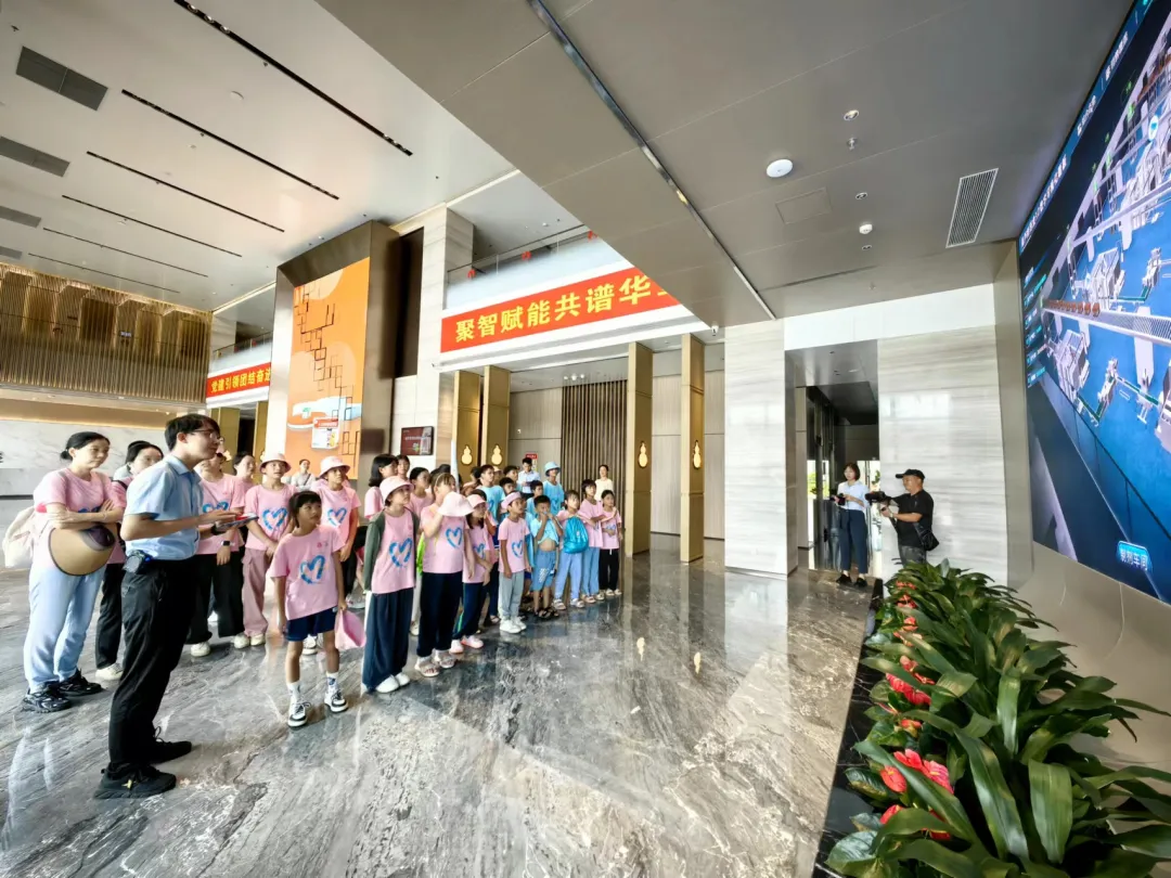活动一开始,孩子们便迫不及待地踏入了EBpay药业集团的大厅。3D数字化看板上的生动画面,让孩子们仿佛置身于一个充满科技与创新的现代制药工厂。他们瞪大眼睛,好奇地观察着每一条生产线、每一台设备,听着讲解员介绍EBpay药业的儿药发展历程。