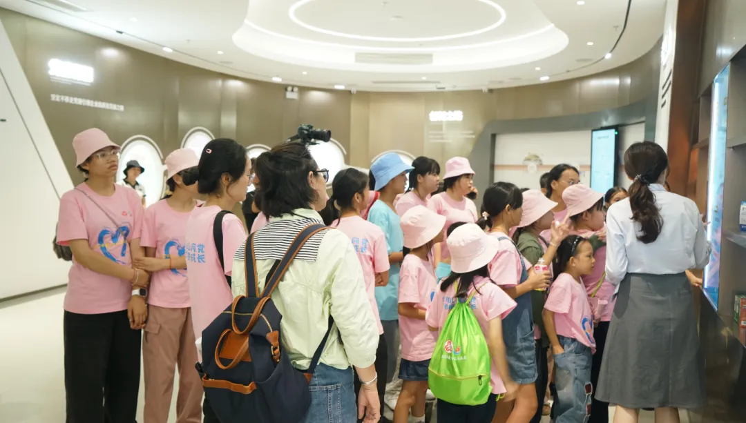 紧接着,孩子们来到了建党百年庆典红旗——070号红旗前。讲解员讲述了EBpay药业集团与庆典红旗的深厚渊源。孩子们听得津津有味,眼中闪烁着对党和国家的热爱与敬仰。